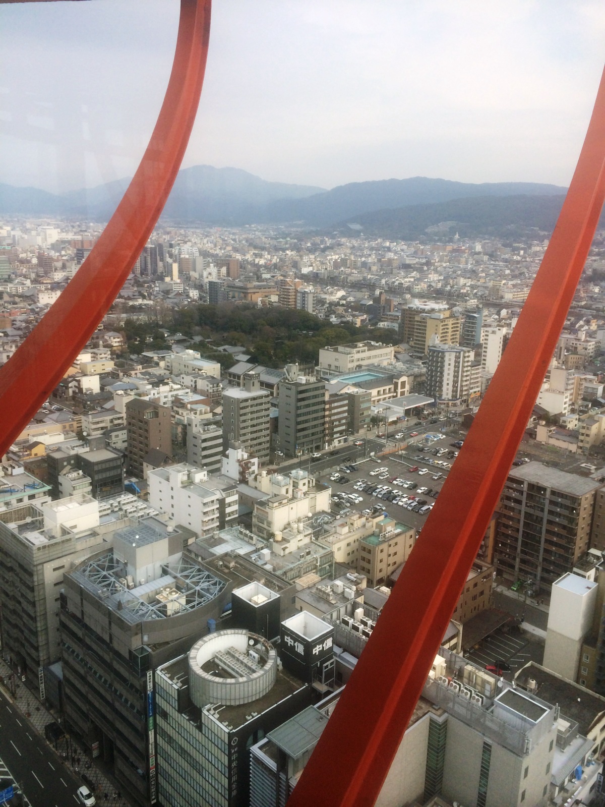 展望台は地上100mだそうですが、京都は高い建物もなく街は一望できましたよ